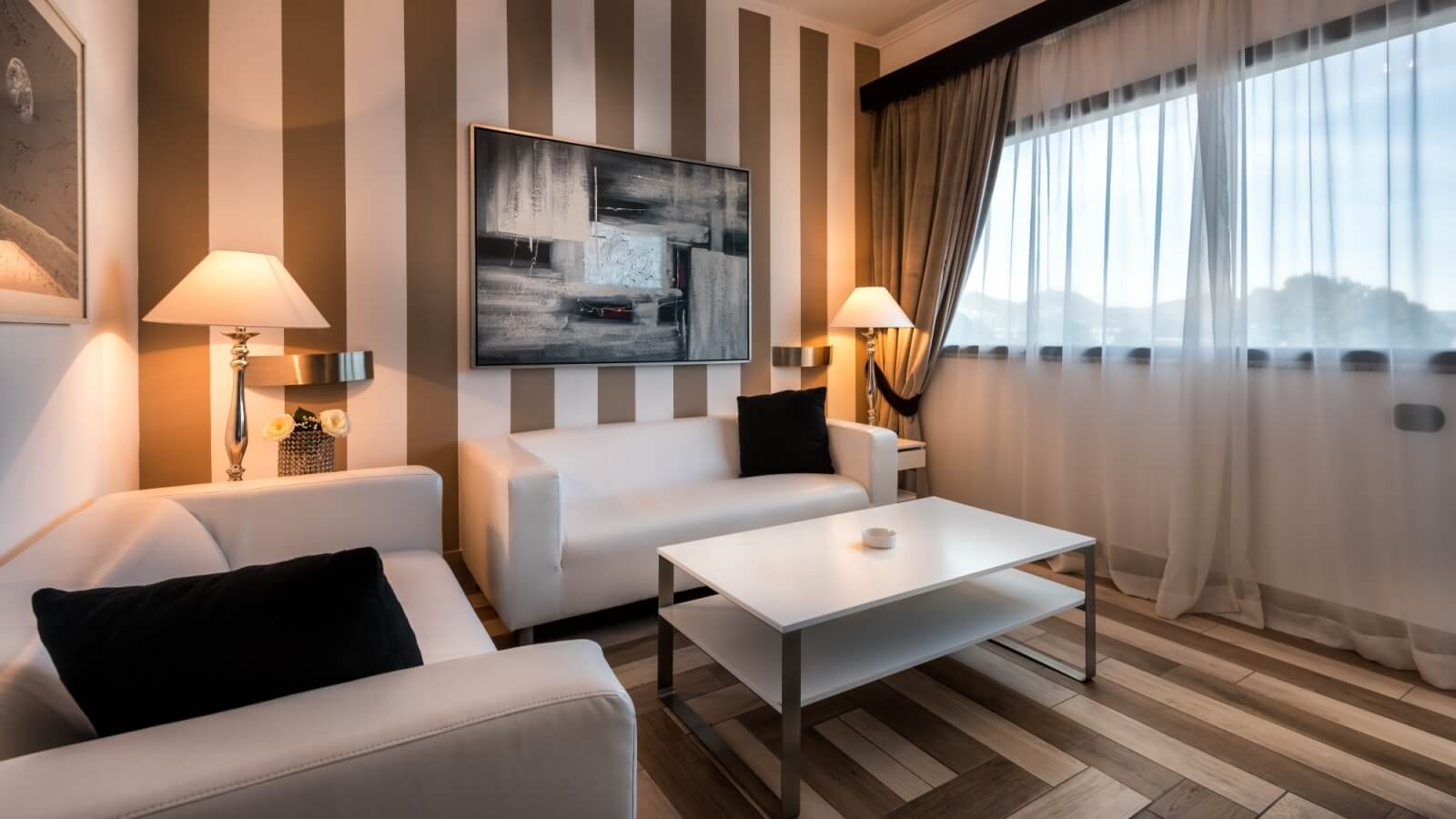 Le sistemazioni sono suddivise in Comfort, Junior Suite e Suite. Lo stile essenziale ed elegante offre un’atmosfera raffinata adatta ad ogni esigenza di viaggio.
